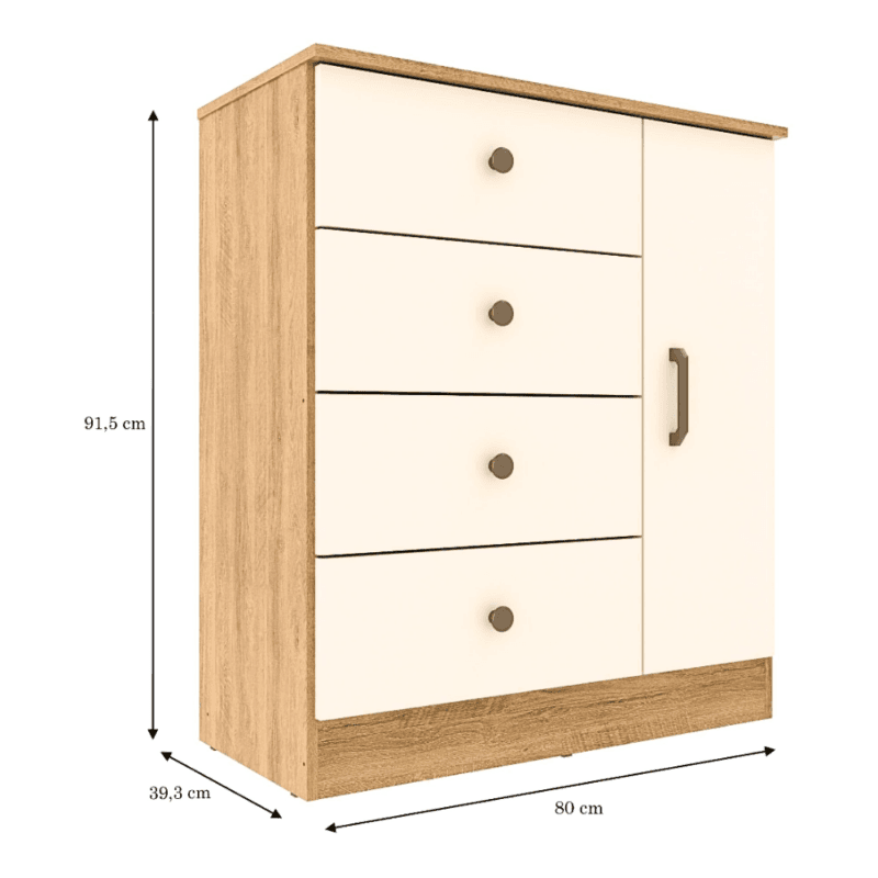 COMODA LISBOA DE 1 PUERTA Y 4 CAJONES COLOR NOGUEIRA/OFF WHITE