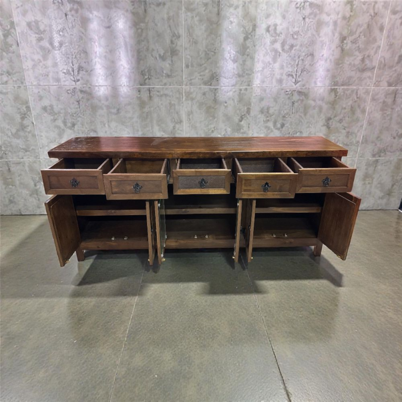 RACK/APARADOR RUSTICO 6 PUERTAS 5 CAJONES COLOR CHOCOLATE