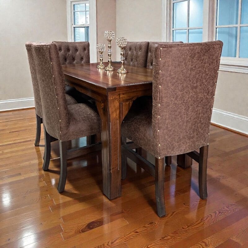 COMEDOR RUTICO RECTANGULAR PATA LUIS XV BASE LISA COLOR NEGRO + 4 SILLAS CAPITONE TAPIZ BEIGE FELPA