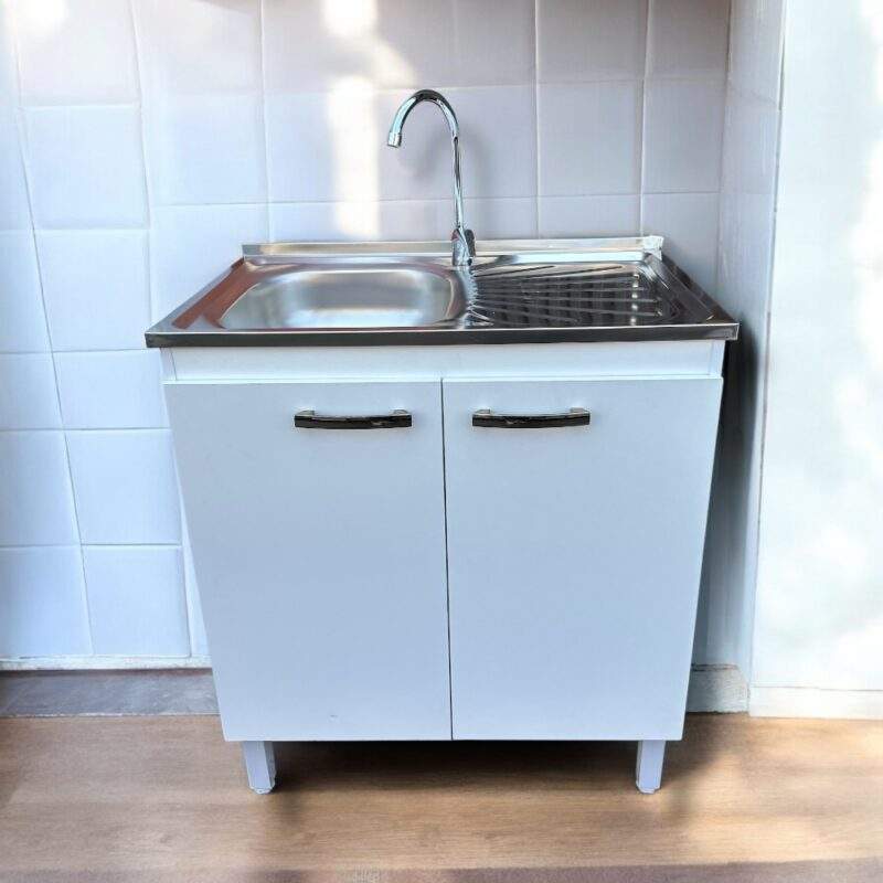 RACK/APARADOR 3 PTS 1 CJ COLOR BLANCO CON MANILLAS DORADAS