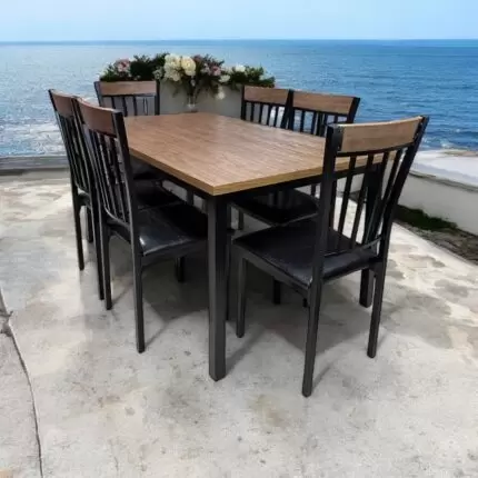 COMEDOR METAL TIPO MARMOL + 6 SILLAS METAL BAO