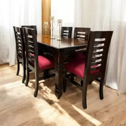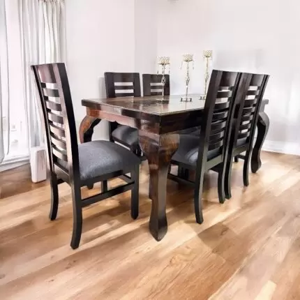 MESA JULIA 160CM 6 SILLAS NOGAL VIDRIO NEGRO SONETO