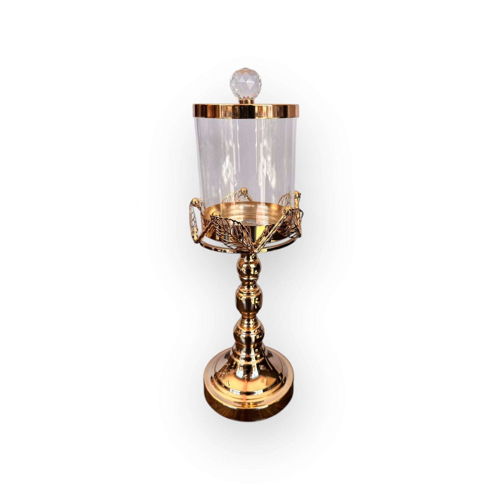 CANDELABRO DE METAL/VIDRIO CON TAPA