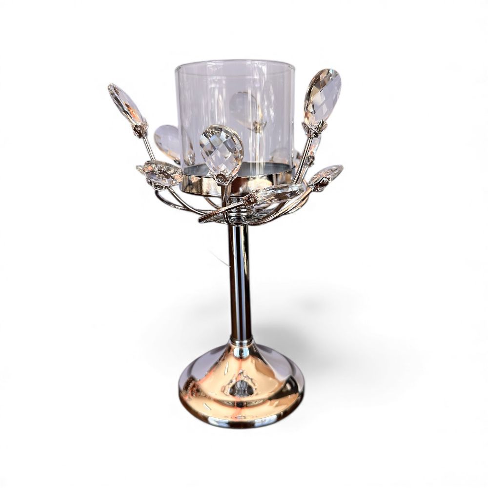 CANDELABRO DE METAL/VIDRIO ESTILO COPA LAGRIMAS