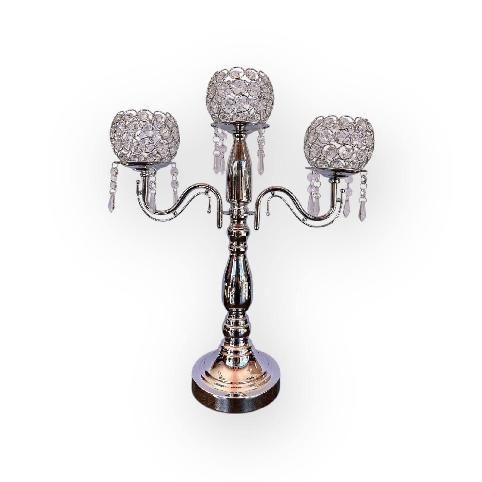 CANDELABRO GIGANTE DE METAL/VIDRIO 3 BRAZOS