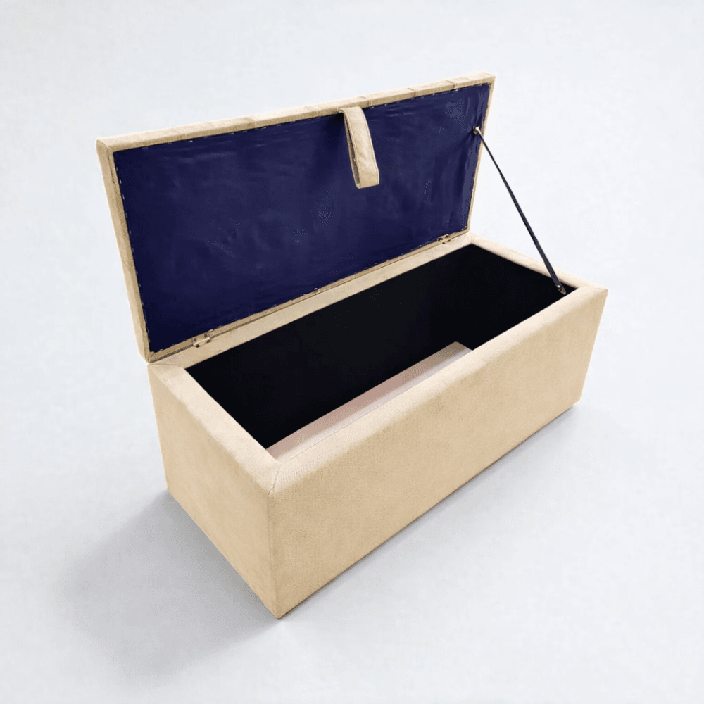 POUF BAÚL DE MADERA PLAZA KING TELA Y COLOR A ELECCIÓN