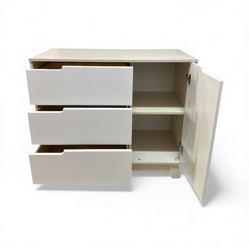 CÓMODA CON MUDADOR PARA BEBE 4 CAJONES 1 PUERTA COLOR NATURA/BLANCO -DBY-