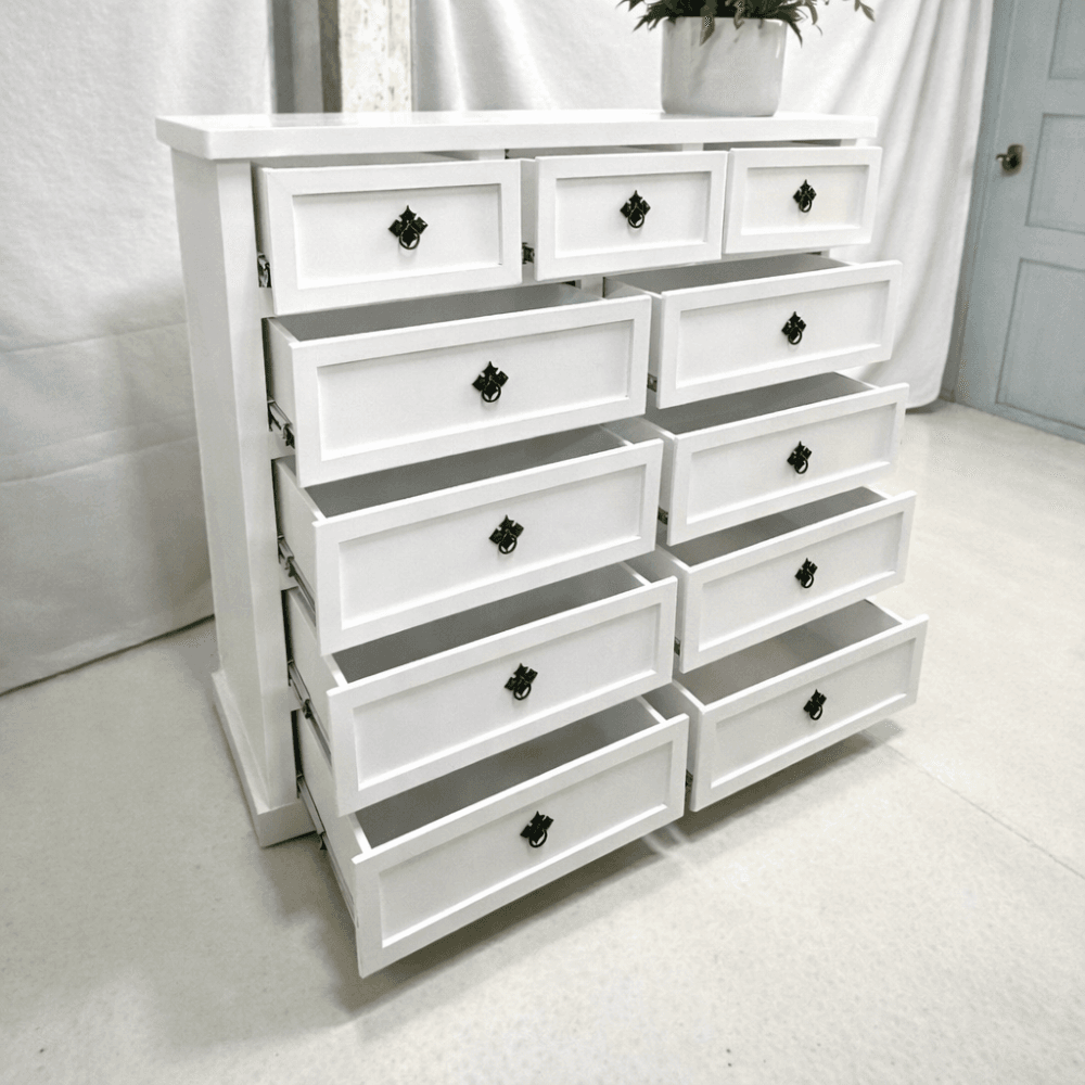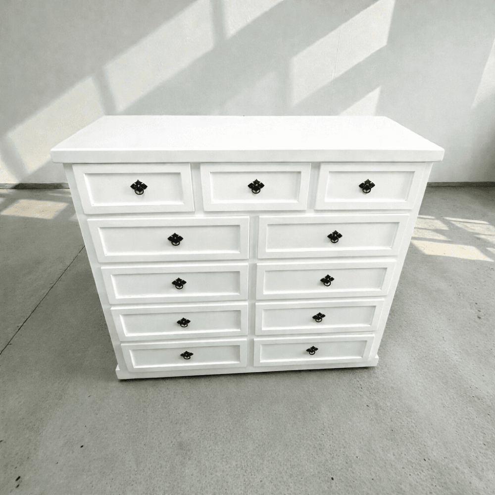 COMODA RUSTICA DE MADERA CON 11 CAJONES COLOR BLANCO