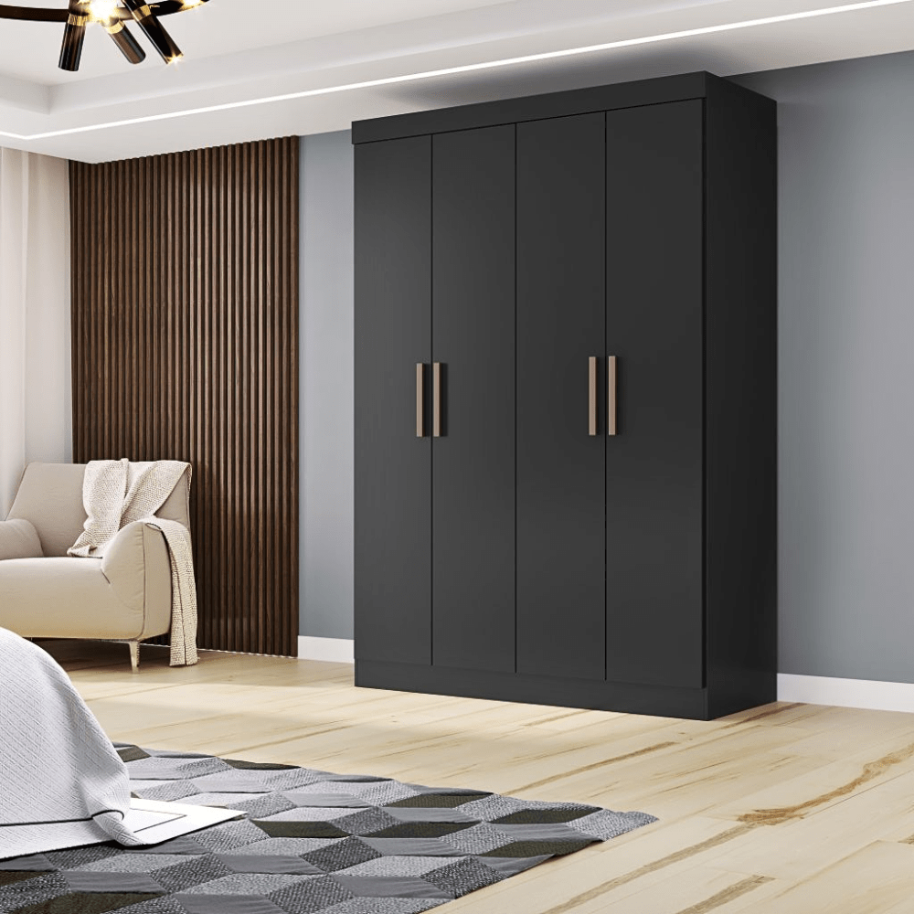 ROPERO PARIS DE MADERA DE 4 PUERTAS Y 2 CAJONES COLOR NEGRO