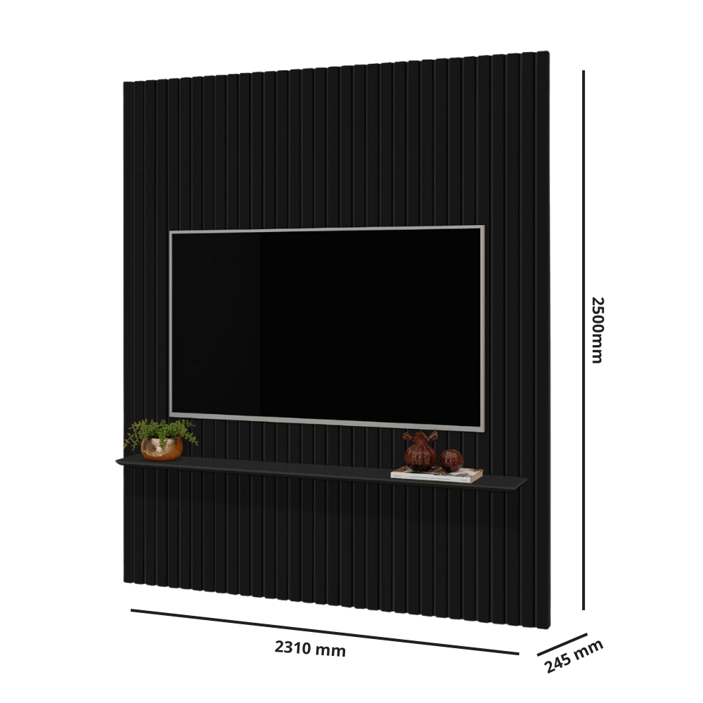 PANEL RIPADO ABSOLUT + REPISA DE MADERA CON LUZ LED COLOR NEGRO