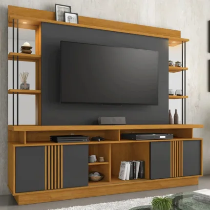 HOME ESPLENDOR DE MADERA COLOR CINAMOMO/GRAFITO IDEAL PARA TV HASTA 65″