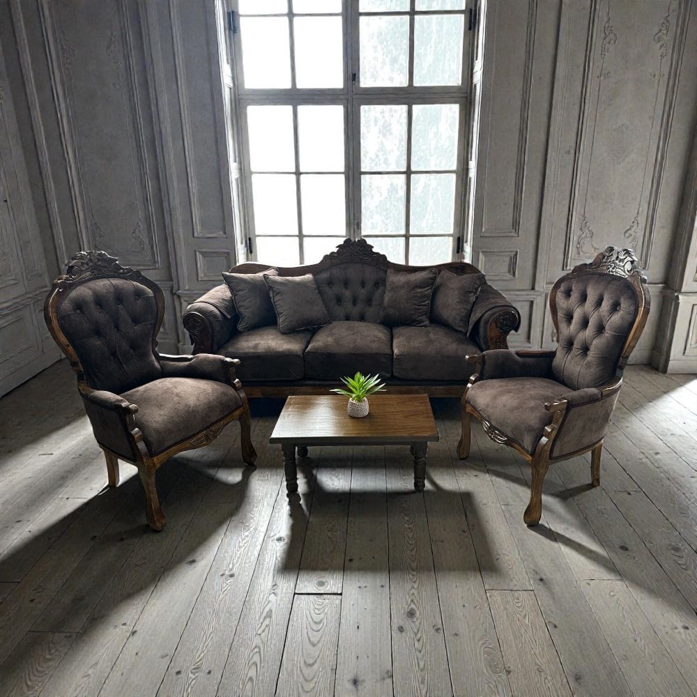 LIVING NORMANDO CON SITIALES 3.1.1 TELA FELPA COLOR CAFÉ